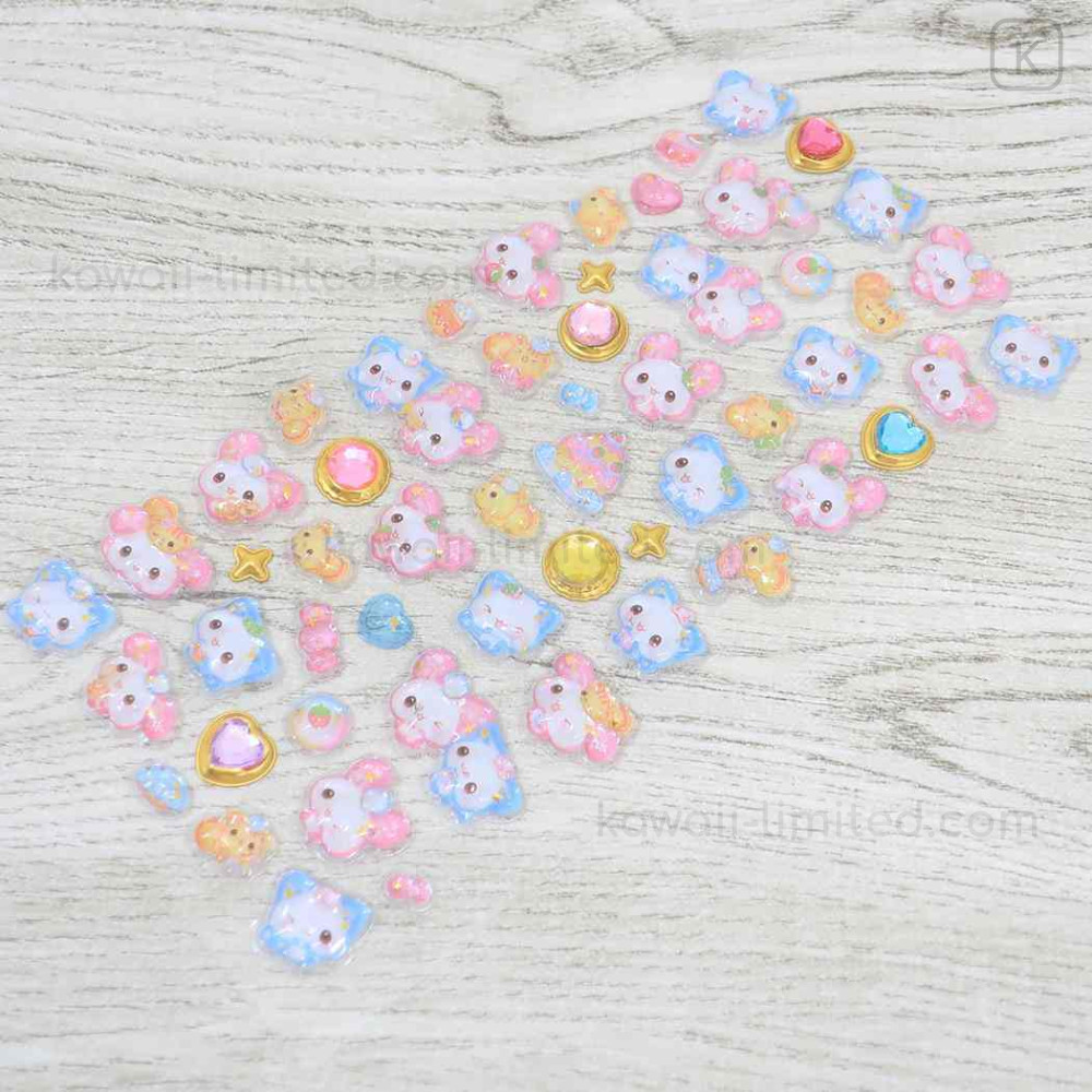 Japan 3D Gold Foil Jewel Sticker - Fluffy Rabbit Pink : Heisei Retro