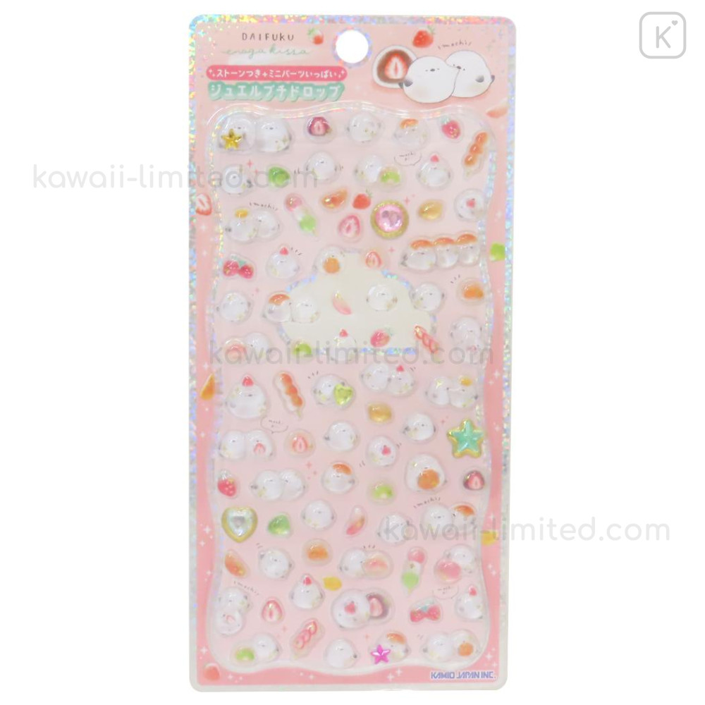 Japan 3D Gold Foil Jewel Sticker - White Bird Shimaenaga Strawberry Daifuku