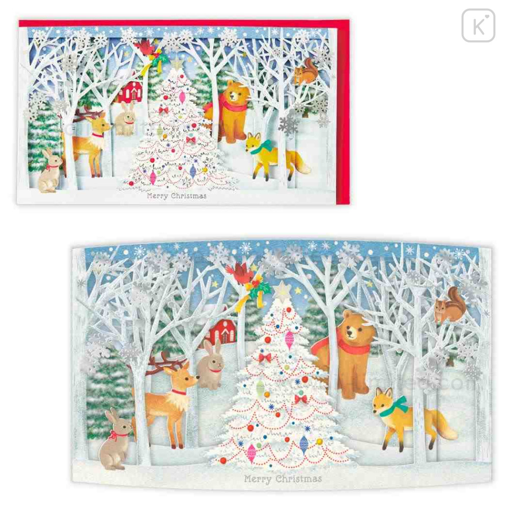 Japan 3D Greeting Card - Christmas Animal In Snow Forest
