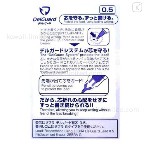 The Zebra DelGuard mechanical pencil prevents lead breakage from any angle. A spring retracts the lead under strong vertical pressure, while a metal part encases and protects it from diagonal pressure. These mechanisms automatically adjust to the force and angle applied. It also prevents lead jams with an internal guide, allowing smooth usage even with short leads, ideal for studying or exams. Developed over five years, DelGuard integrates two springs to guard against diagonal pressure, ensuring durability and a smooth writing experience without lead breakage.