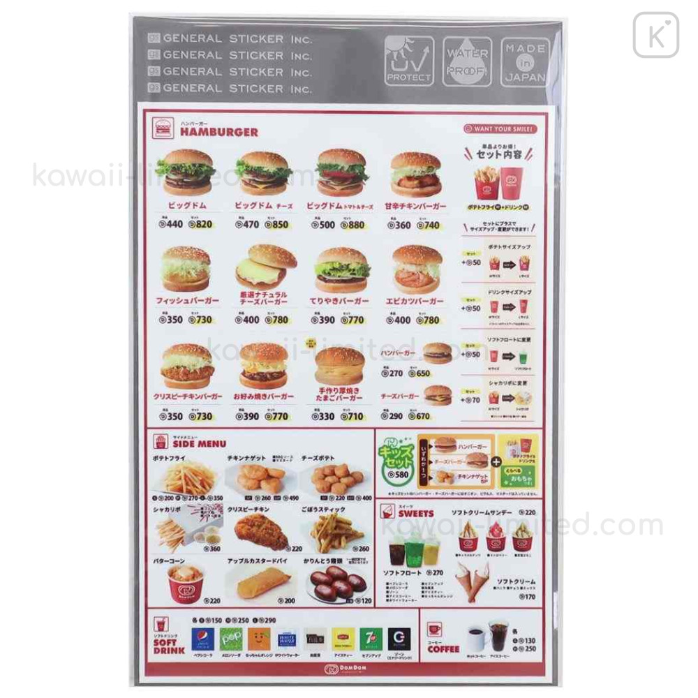 Japan Car Vinyl Sticker - Hamburger Fast Food Menu