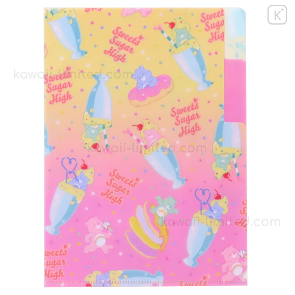 Japan Care Bears 2 Pockets A5 Clear File - Sweets Sugar High