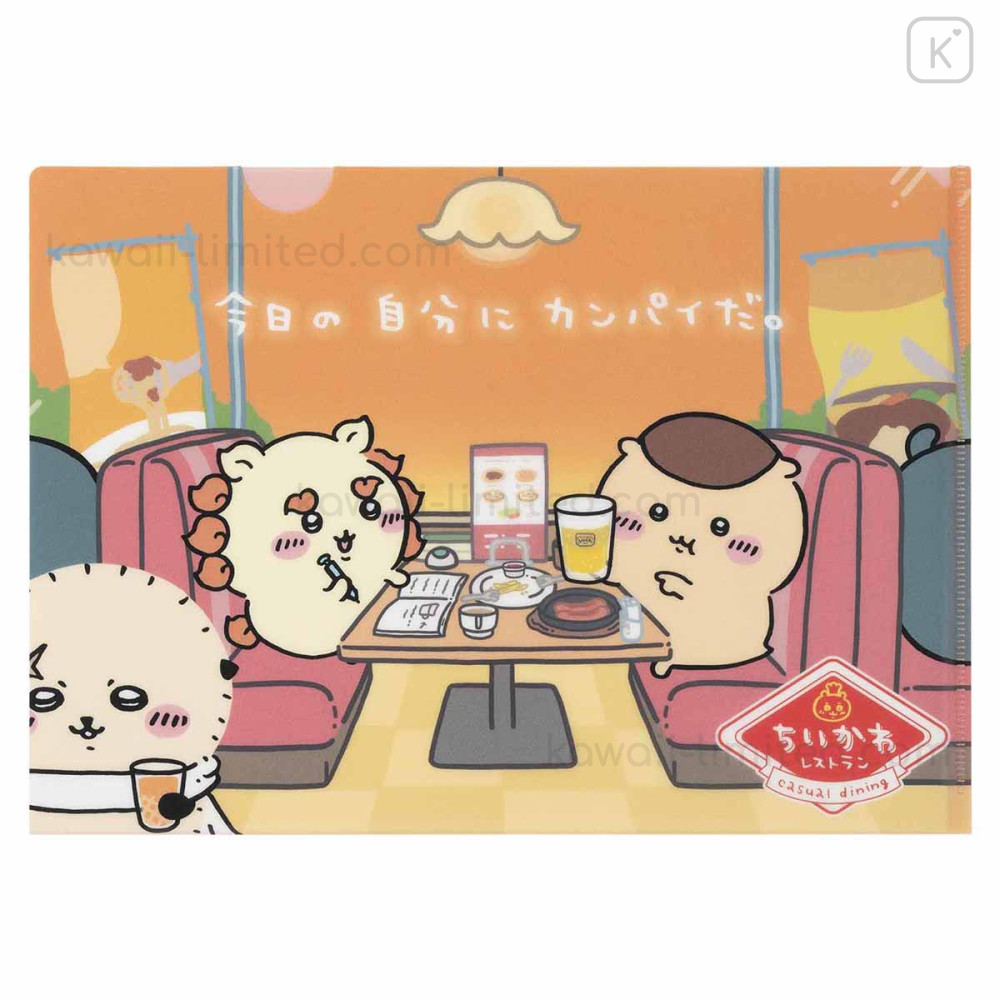 Japan Chiikawa A4 Clear File Folder - Kurimanju & Rakko & Shisa : Chiikawa Restaurant