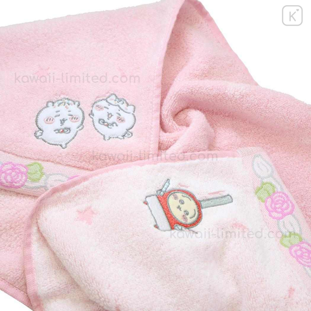 Japan Chiikawa Embroidery Face Towel - Chiikawa & Hachiware & Usagi : Birthday Light Pink