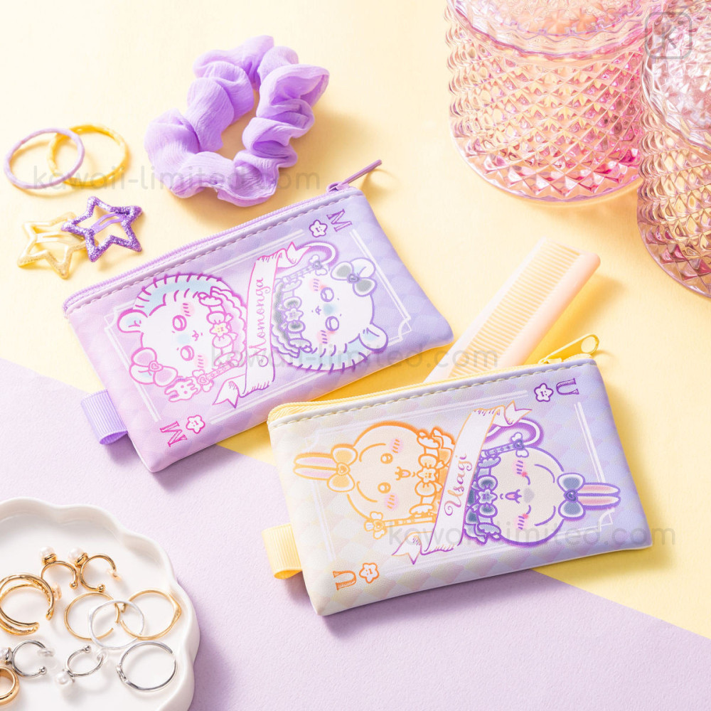 Japan Chiikawa Flat Mini Pouch - Momonga & Usagi : Magical Chiikawa Trump Card
