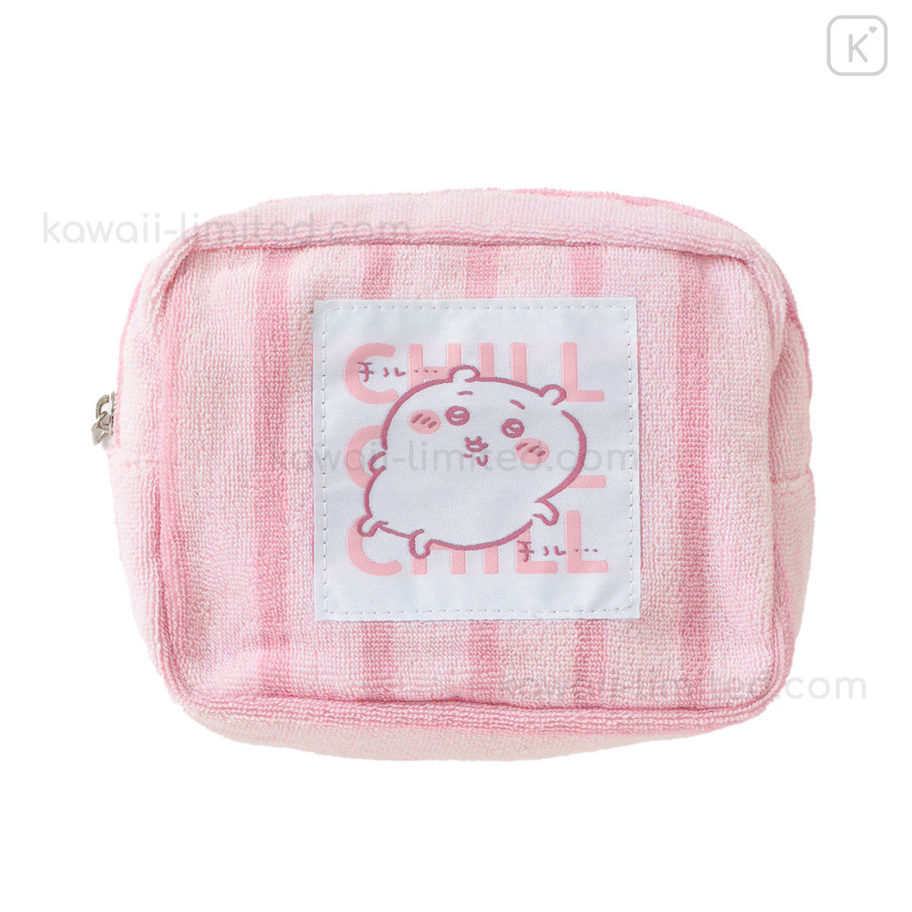 Japan Chiikawa Square Cosmetic Pouch - Chiikawa : Chill Chill Pink Stripe