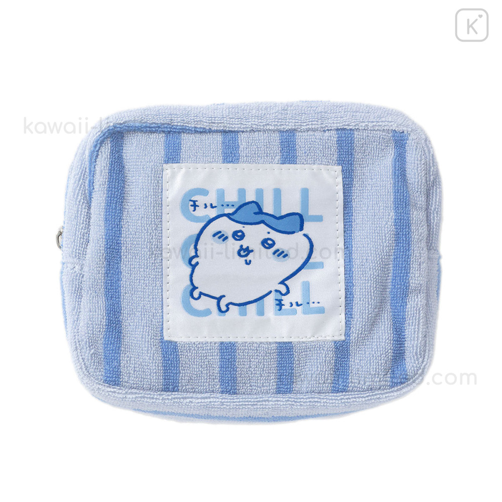 Japan Chiikawa Square Cosmetic Pouch - Hachiware : Chill Chill Blue Stripe