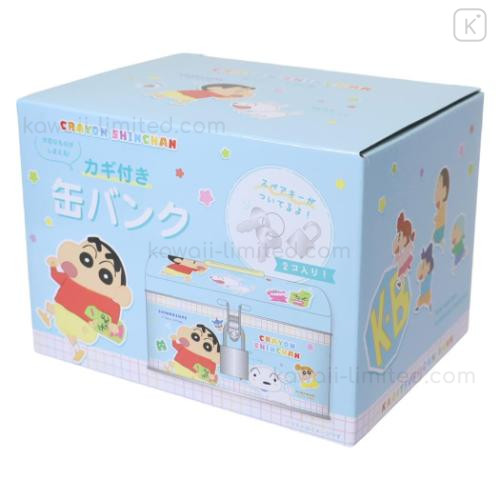 Japan Crayon Shin-chan Can Piggy Bank with Lock Case - Shinnosuke Nohara & Shiro : Blue