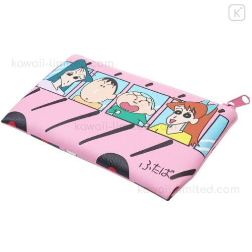 Japan Crayon Shin Chan Flat Pouch - Friends in Kindergarten Bus