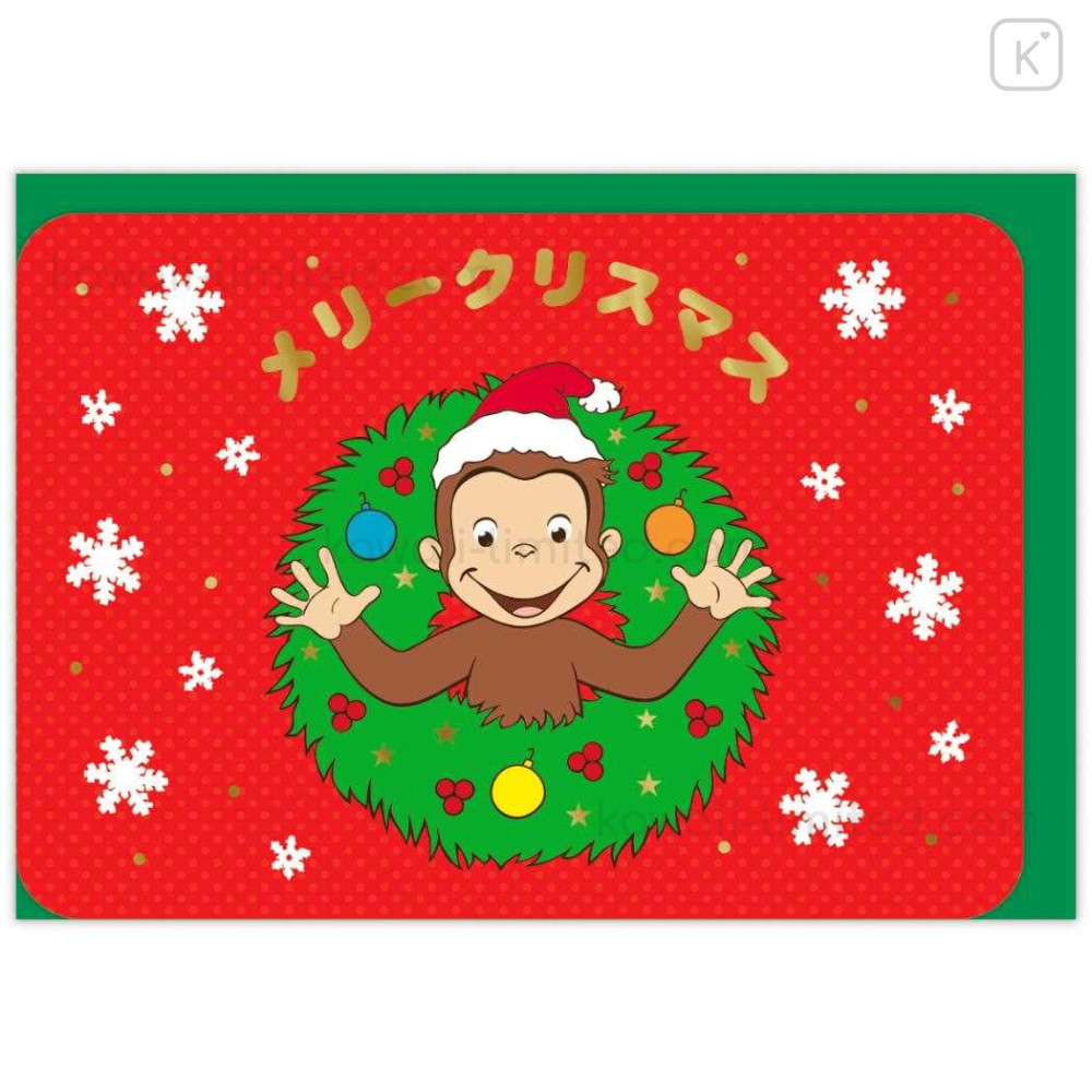 Japan Curious George 3D Greeting Card - Christmas Wreath