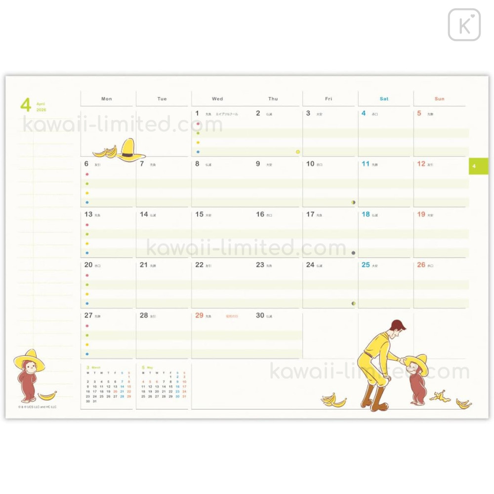 Japan Curious George A5 Planner Monthly Schedule Book - 2026