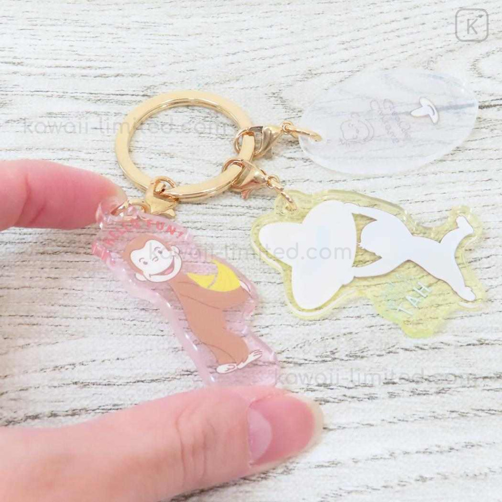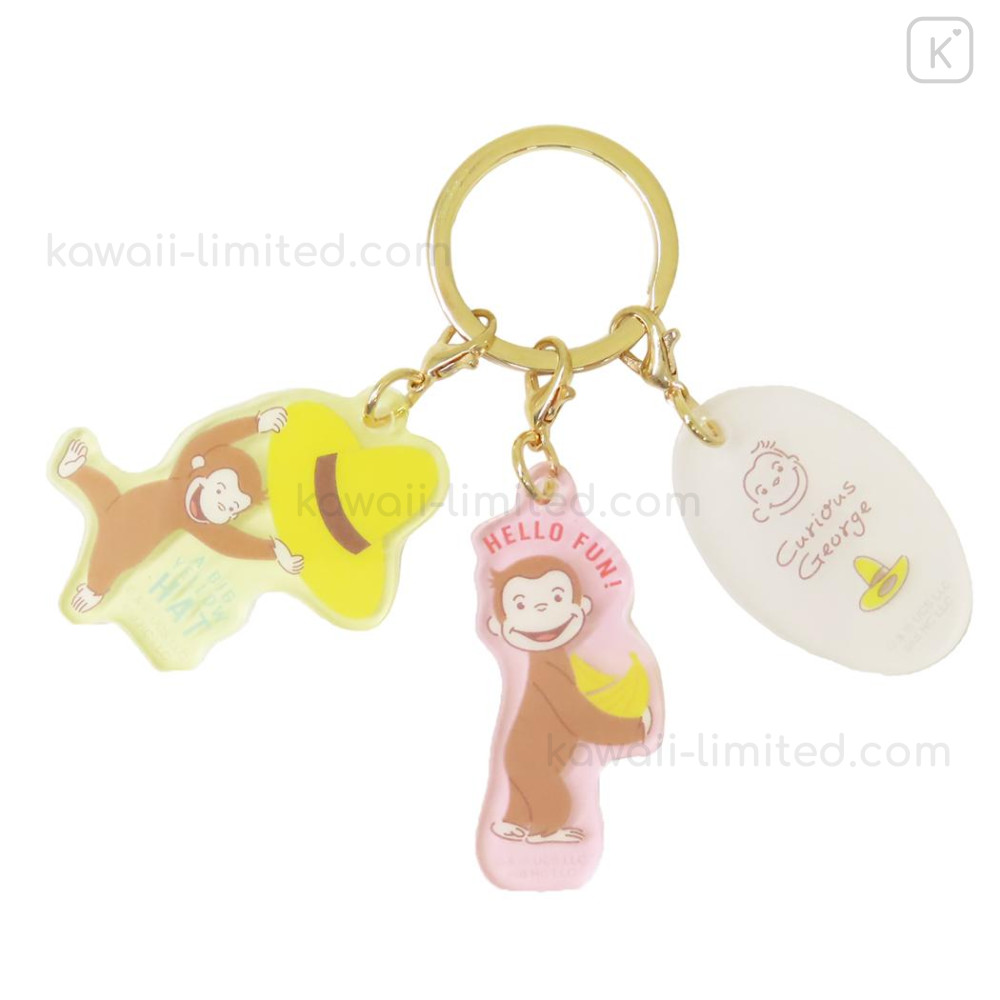 Japan Curious George Acrylic Keychain 3 Charm - Big Yellow Hat