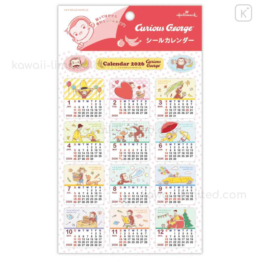 Japan Curious George Calendar Sticker - 2026