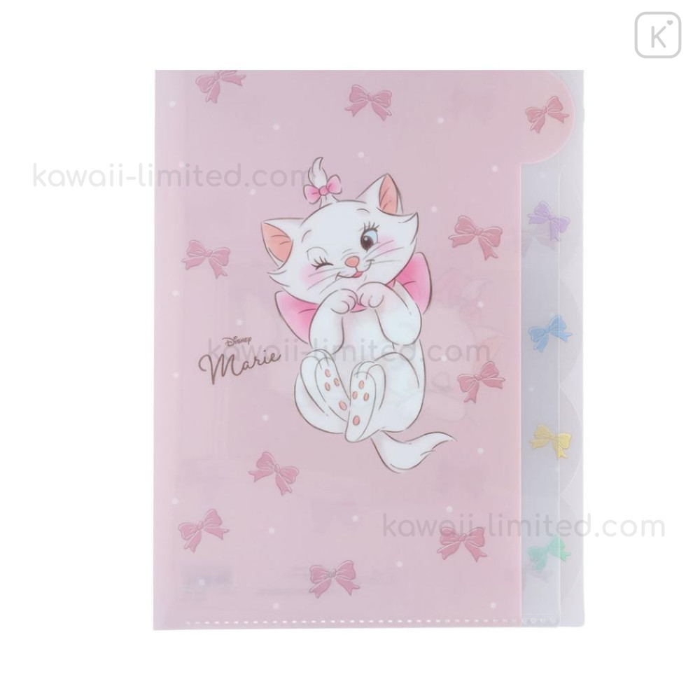Japan Disney 5 Pockets A4 Index File Holder - Marie : Ribbon Pink