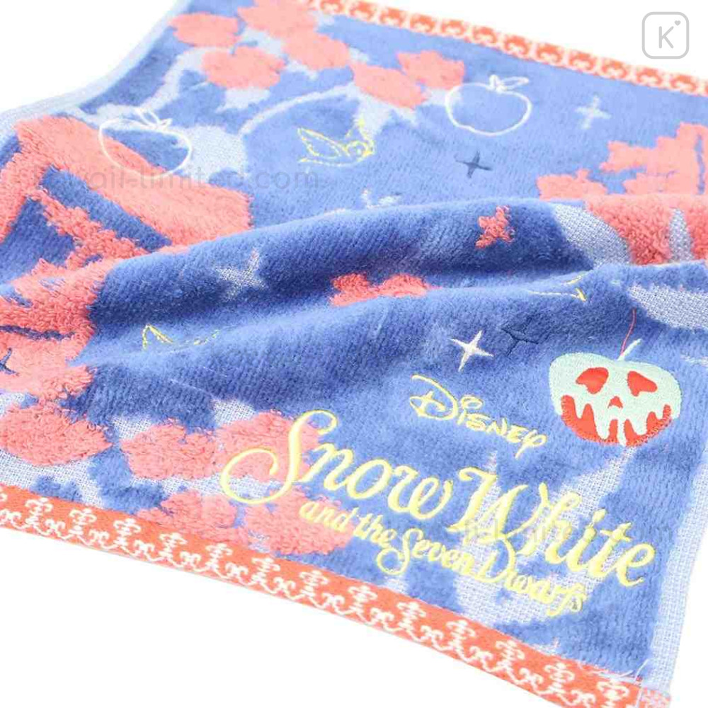 Japan Disney Embroidered Mini Towel Handkerchief - Snow White and the Seven Dwarfs : Silhouette Blue Pink