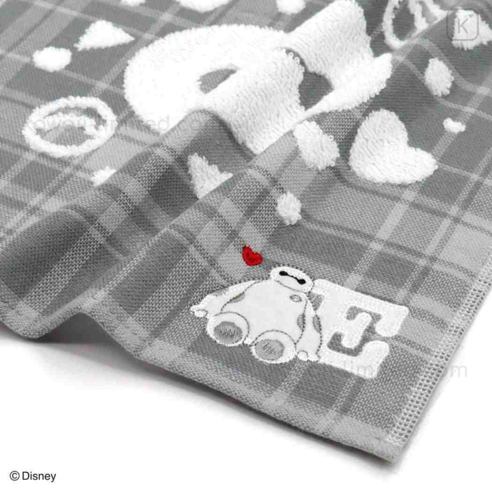 Japan Disney Gauze Towel Handkerchief - Baymax : Gingham Grey Alphabet E