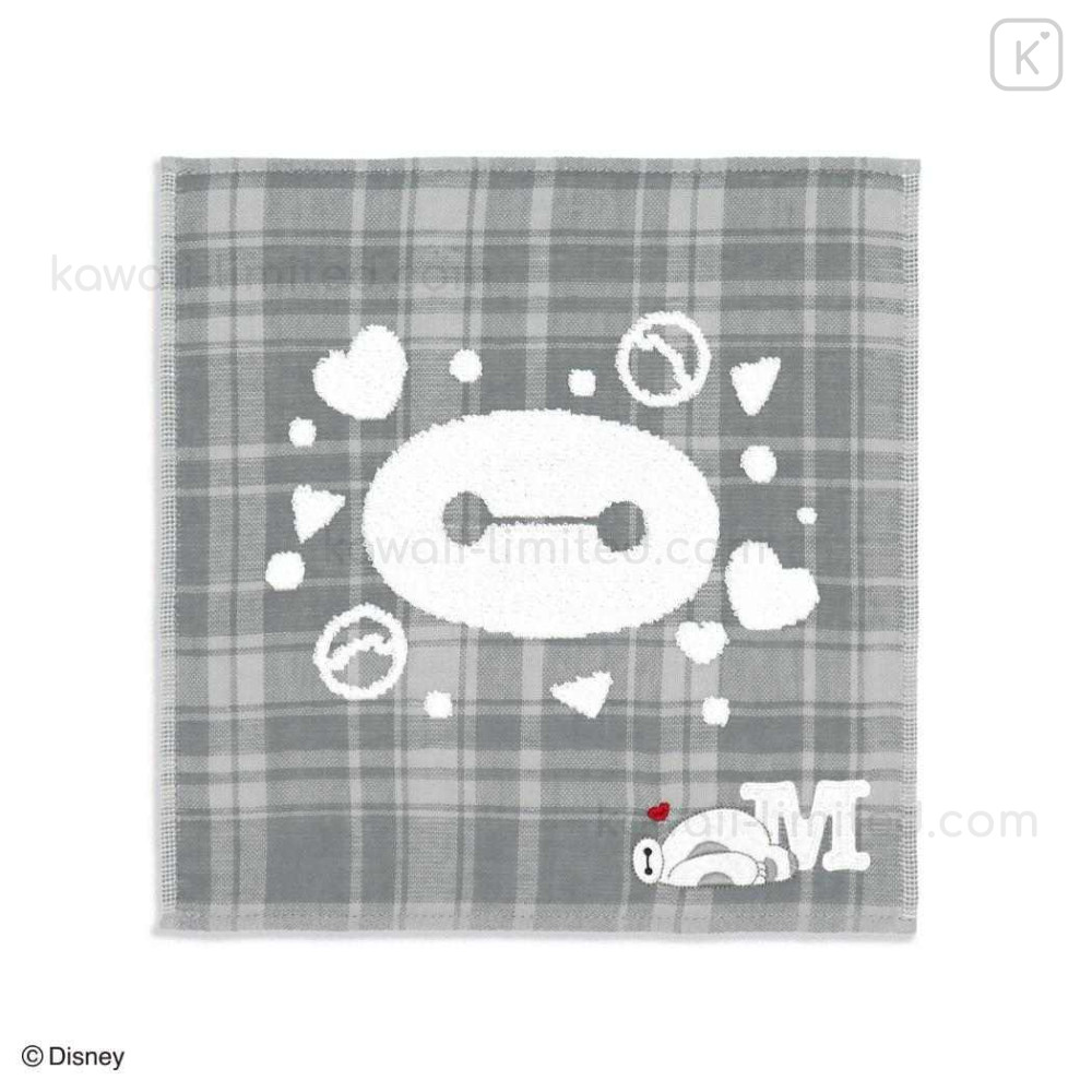 Japan Disney Gauze Towel Handkerchief - Baymax : Gingham Grey Alphabet M