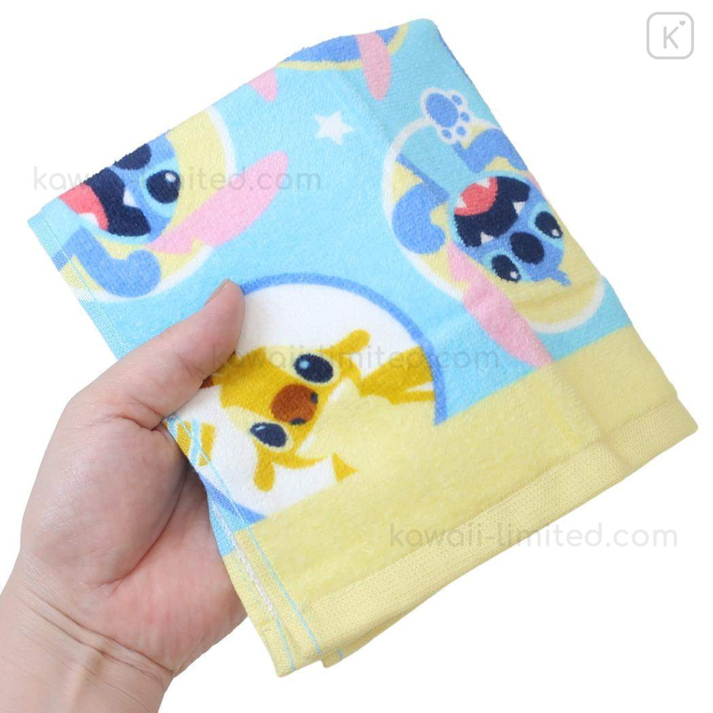 Japan Disney Jacquard Wash Towel - Stitch : Funny Face Blue Yellow