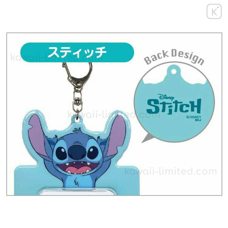 Japan Disney Photo Holder Card Case Keychain - Stitch : Happy