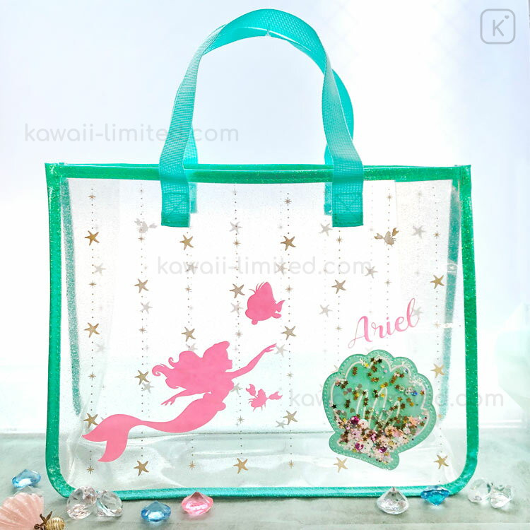 Japan Disney Pool Bag Vinyl Tote Bag - Ariel : Silhouette Sequins Glitter