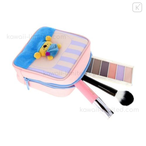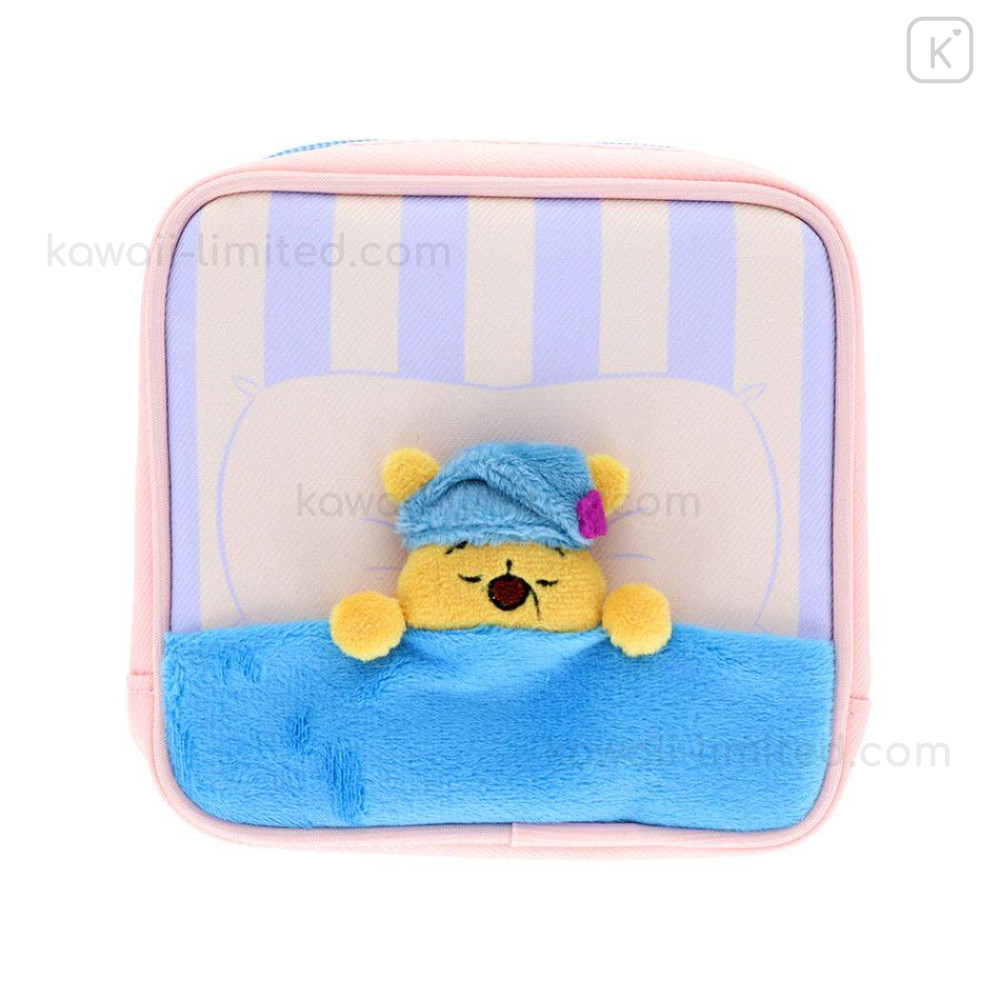 Japan Disney Square Cosmetic Pouch - Pooh : Mascot Good Night Pink