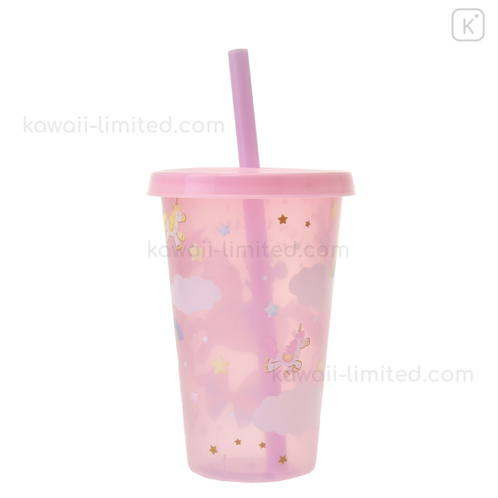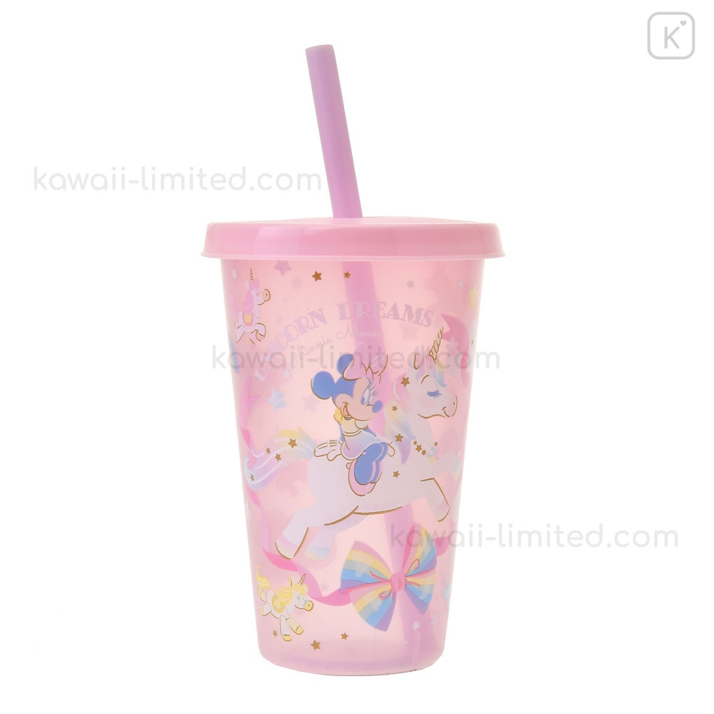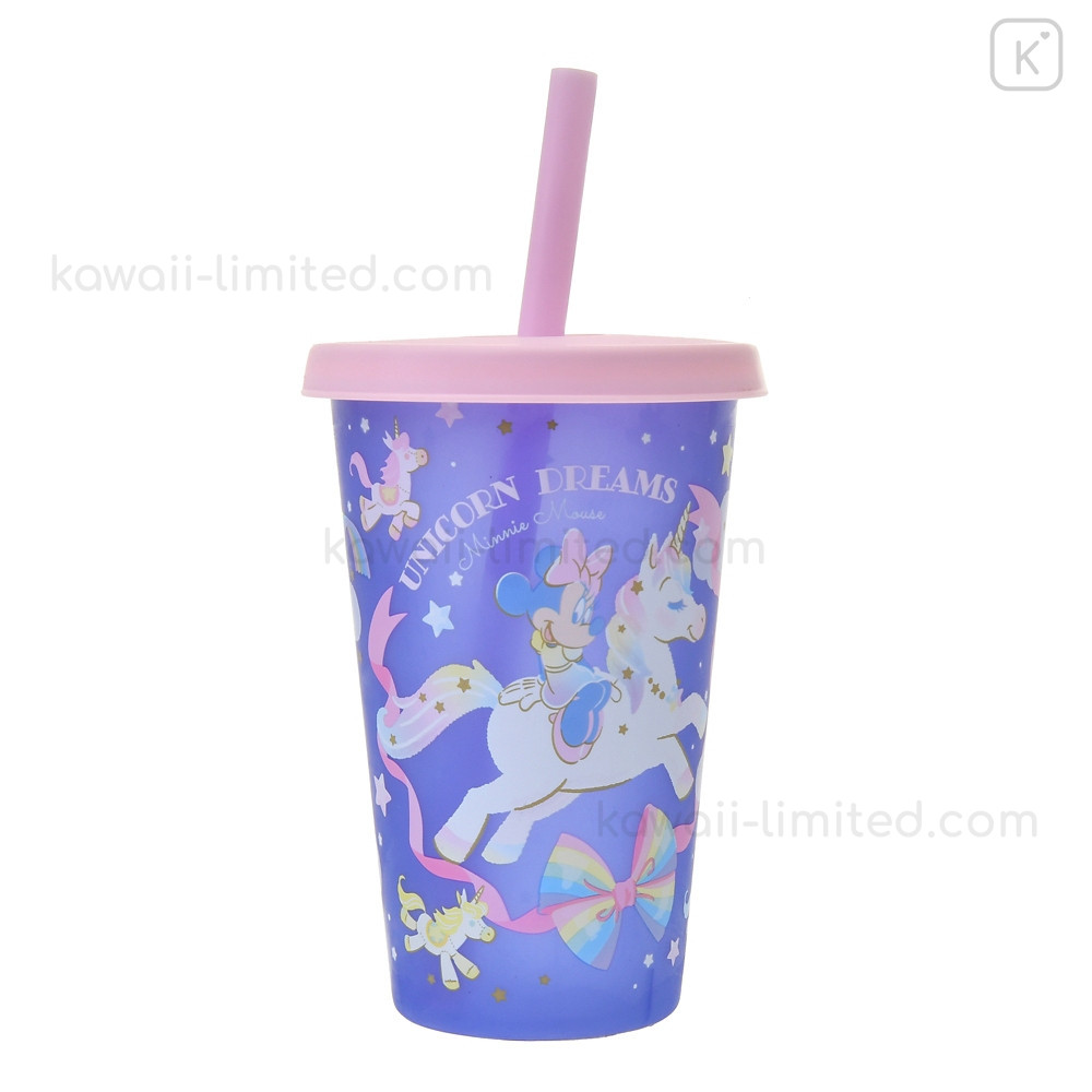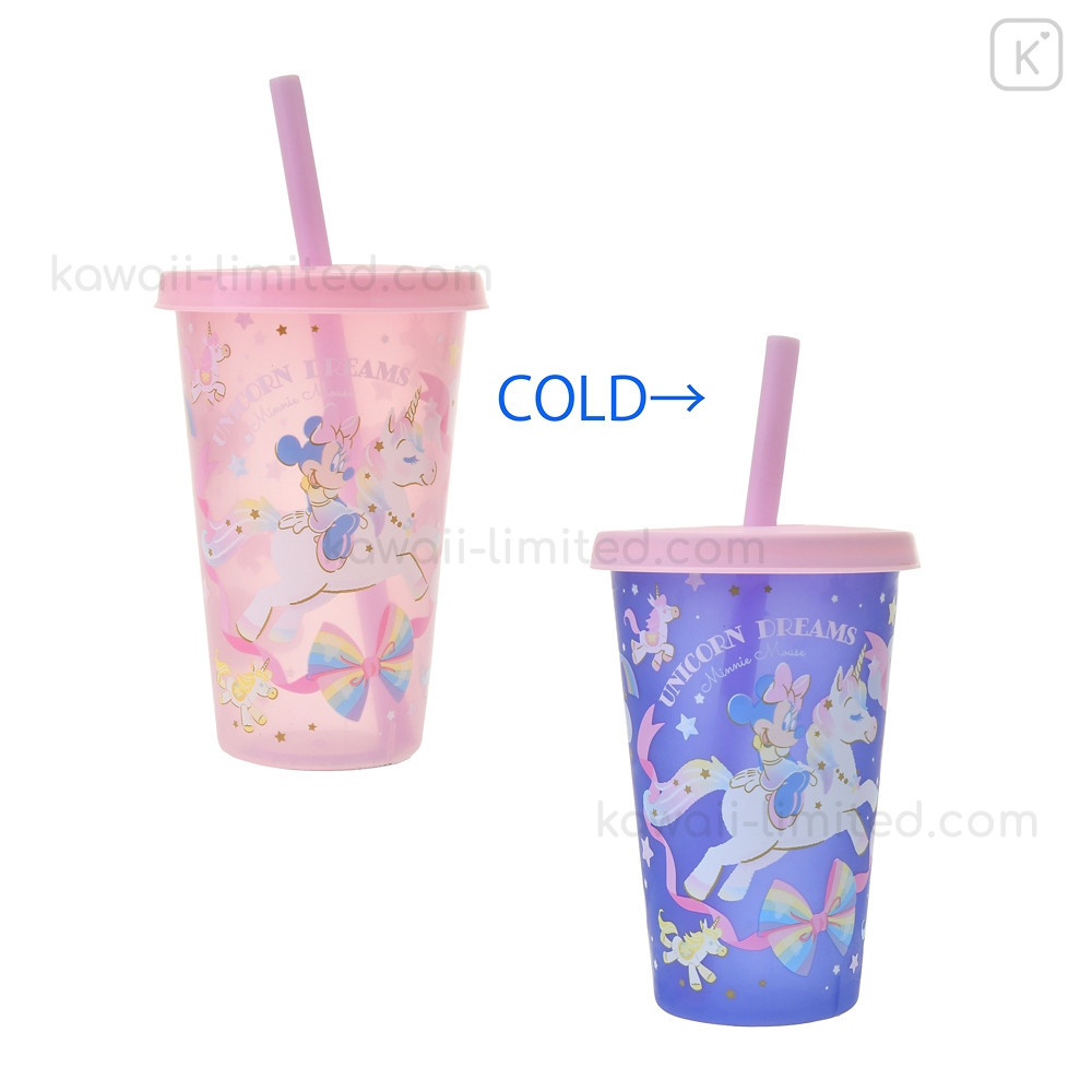 Japan Disney Store Clear Tumbler - Minnie Mouse / Changing Rainbow Unicorn / Cold Drink