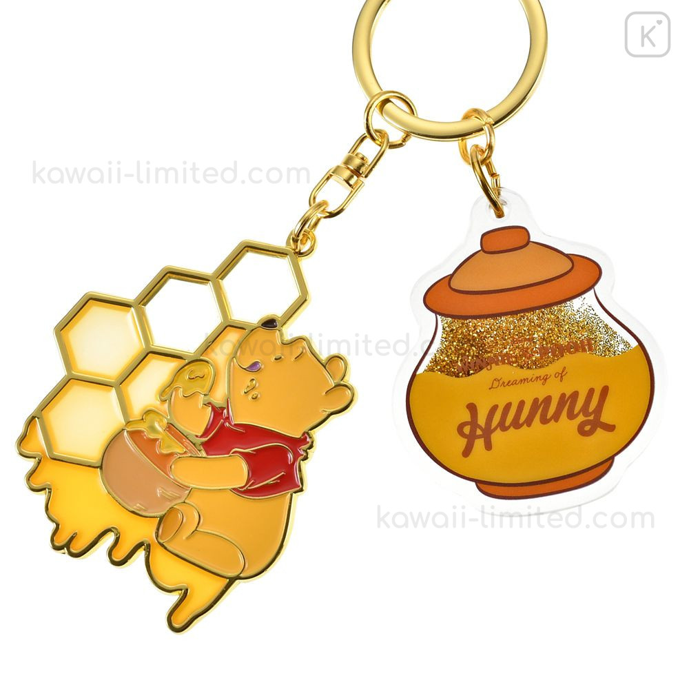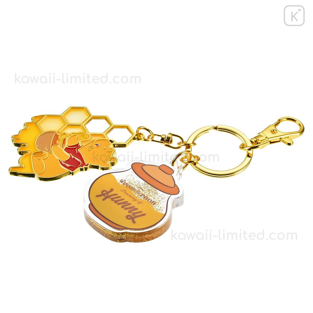 Japan Disney Store Floating Sequins Keychain - Pooh : Honey Day Glitter Water