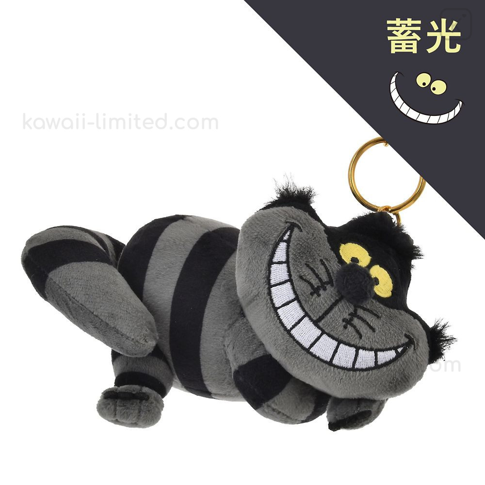Japan Disney Store Fluffy Plush Keychain - Cheshire Cat : Glow in the Dark Black