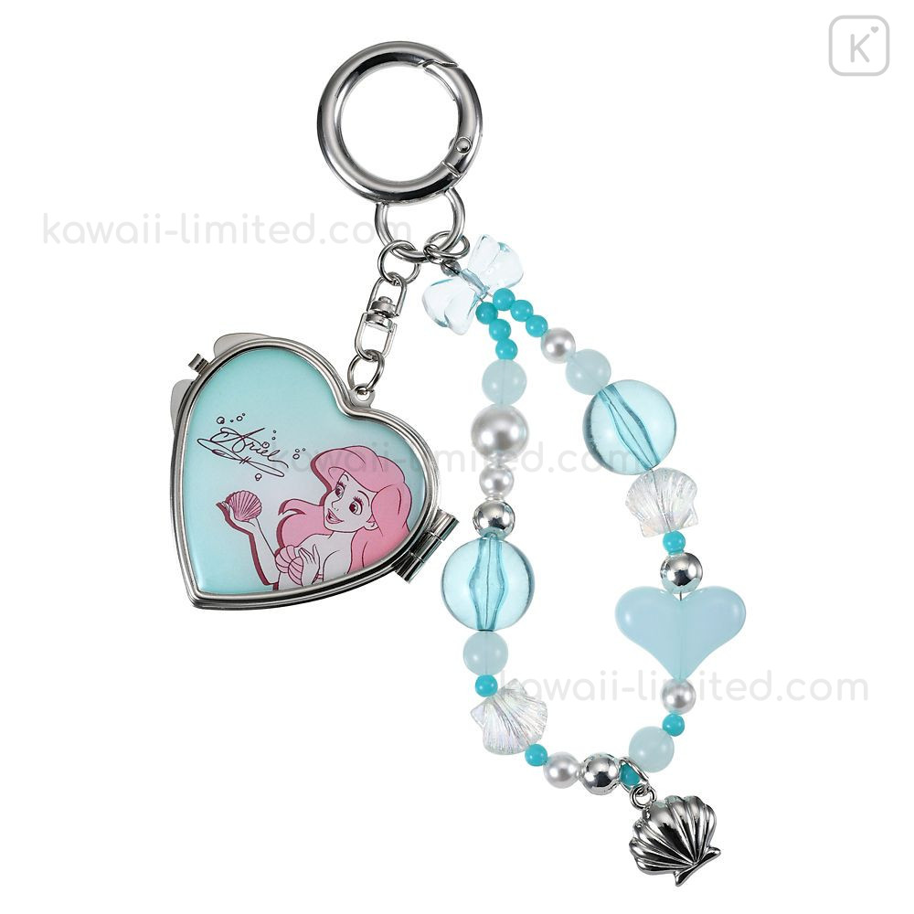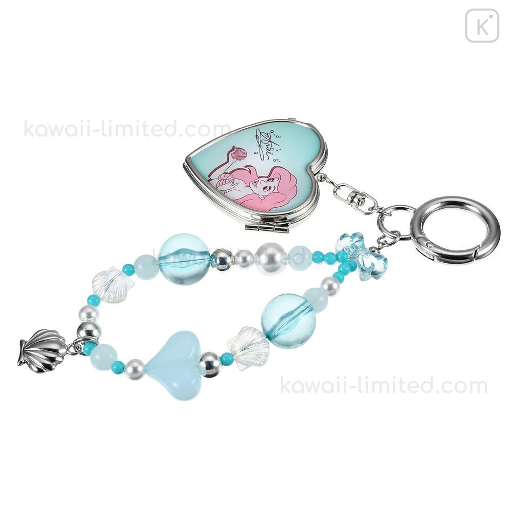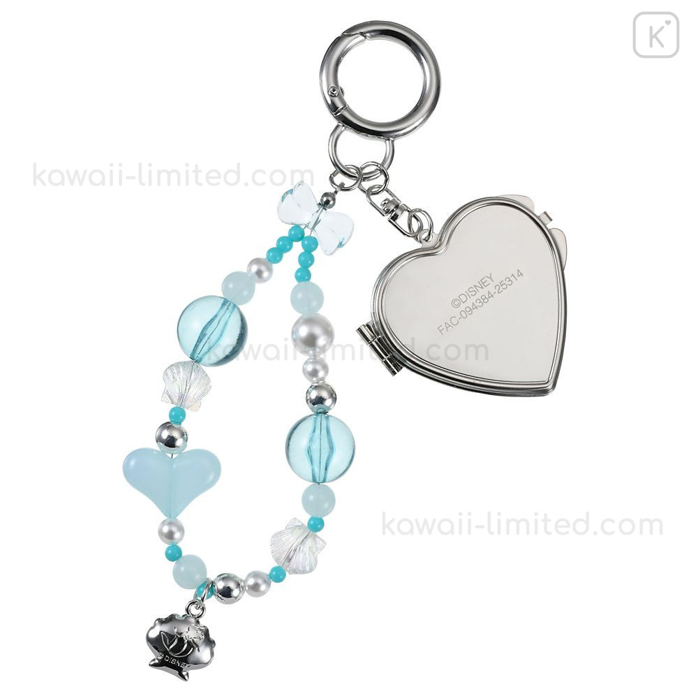 Japan Disney Store Heart-Shaped Mirror with Bead Keychain Strap Keychain - The Little Mermaid : Mint