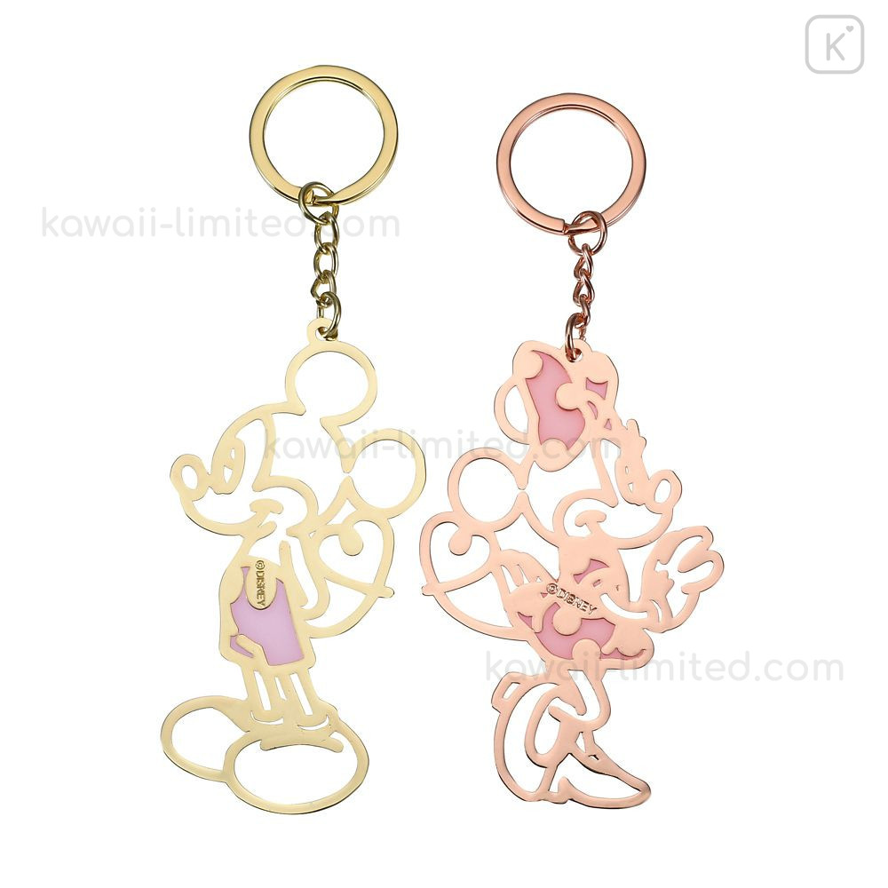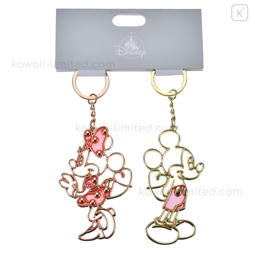 Japan Disney Store Metal Keychain - Mickey & Minnie : Outline Pair Heart Line Key Chain Fes