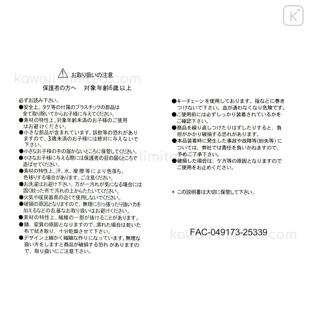 My daughter is sooo happy. The quality is so good. She loves her cinnamoroll. :) we are so happy that we could buy those things coz they are not so easy to get. Shipping was fast and best Service ever. I will buy again something for sure. :)