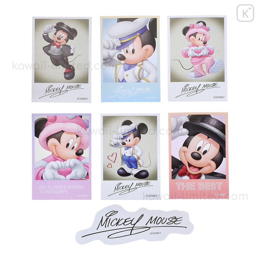 Open the stylish book-shaped box to find a variety of Mickey Mouse stickers, including instant photo-style stickers and die-cut signatures.