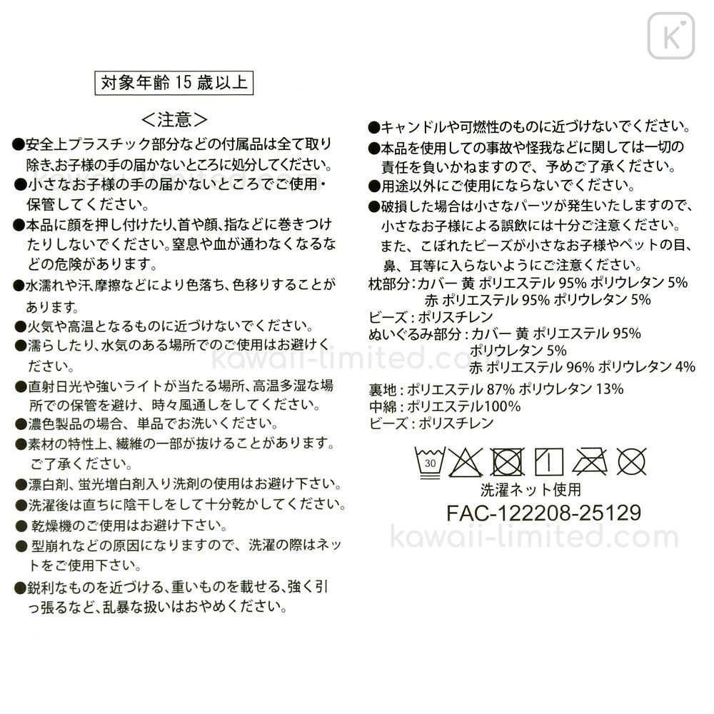 - Open the zipper on the belly side, move the beads inside, and turn the fabric over to transform it into a neck pillow with a playful character design.