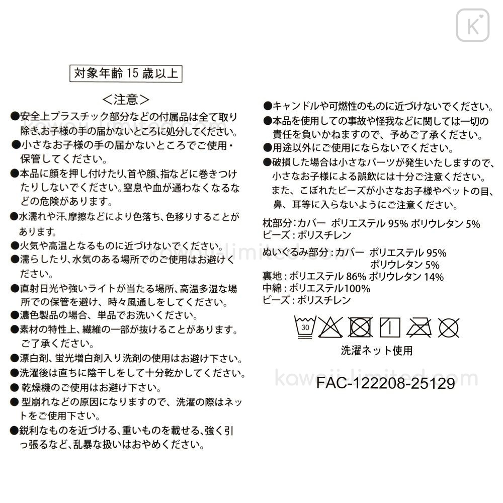 - Open the zipper on the belly side, move the beads inside, and turn the fabric over to transform it into a neck pillow with a playful character design.