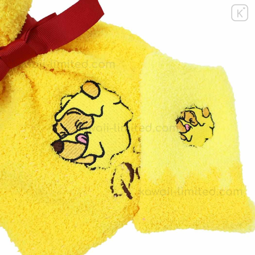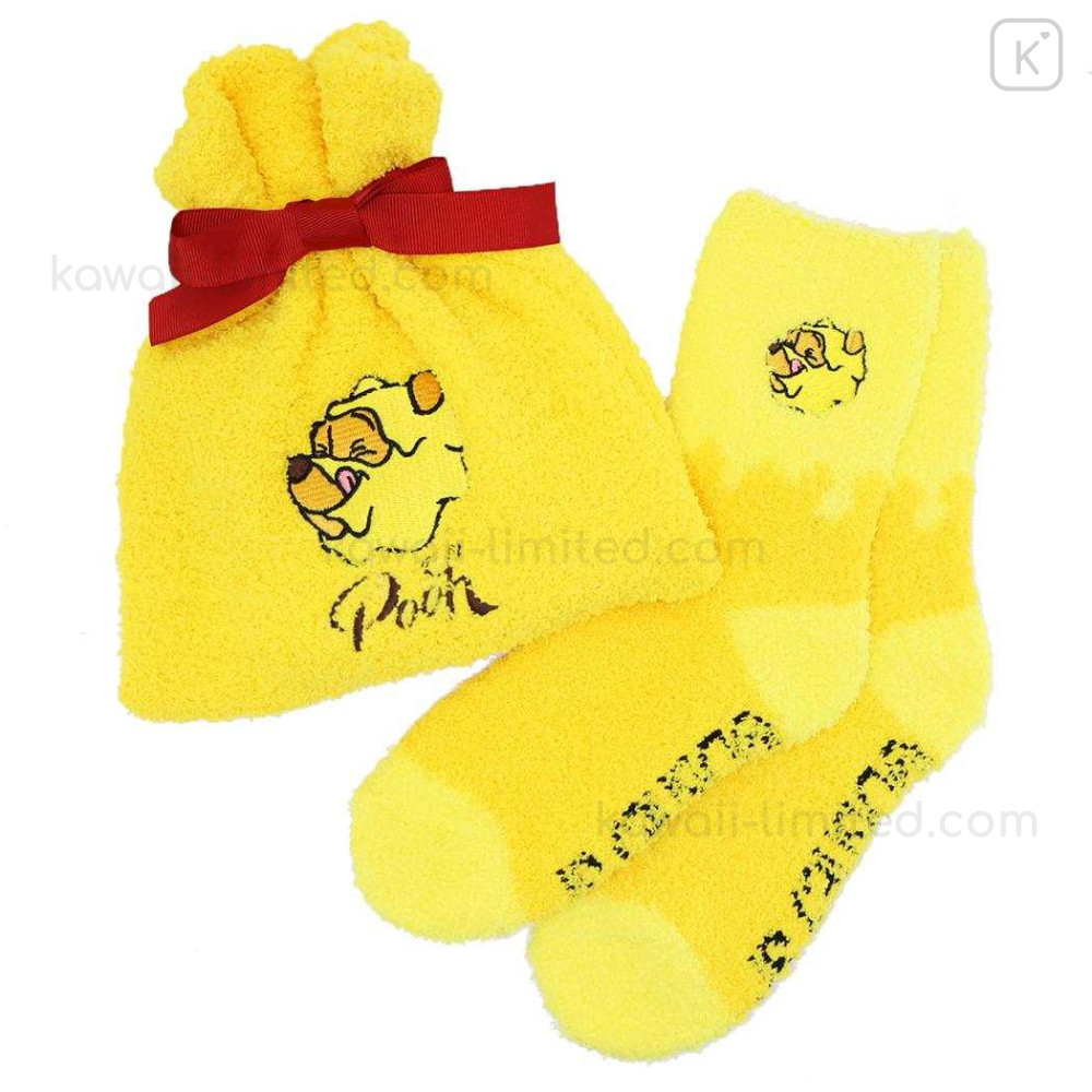 Japan Disney Warm Socks & Drawstring Bag - Pooh : Hunny Yellow