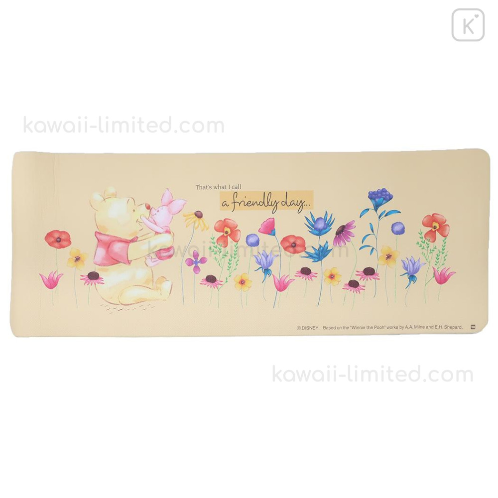 Japan Disney Wipeable PVC Kitchen Mat - Piglet & Pooh : Flower Light Orange