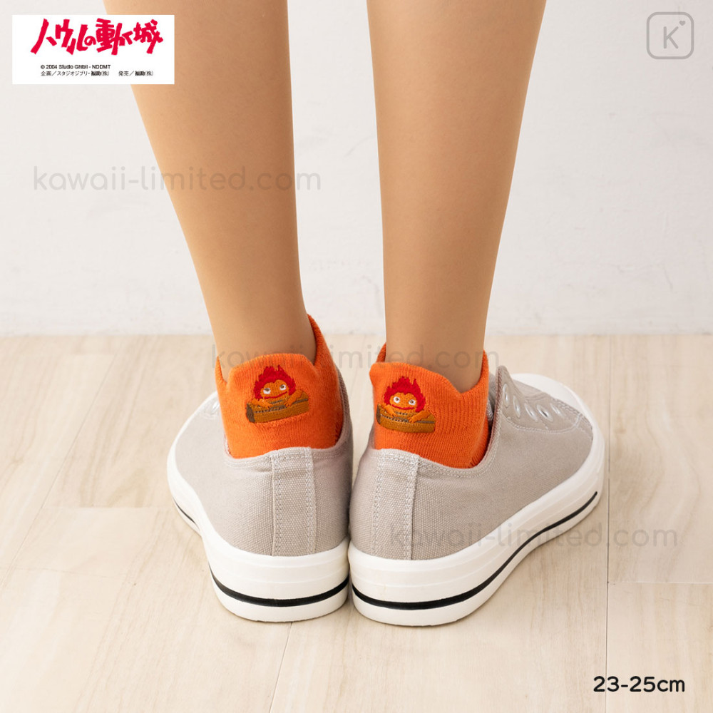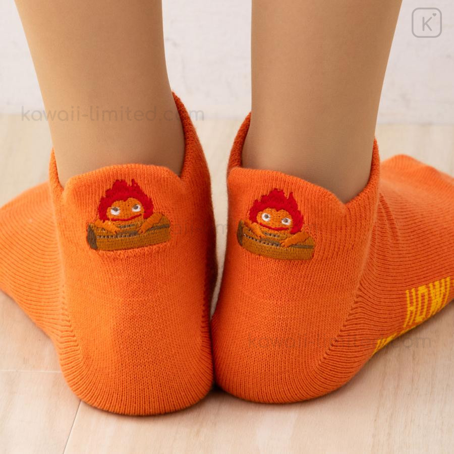 Japan Ghibli Back Embroidery Short Ankle Socks - Howl's Moving Castle : Orange