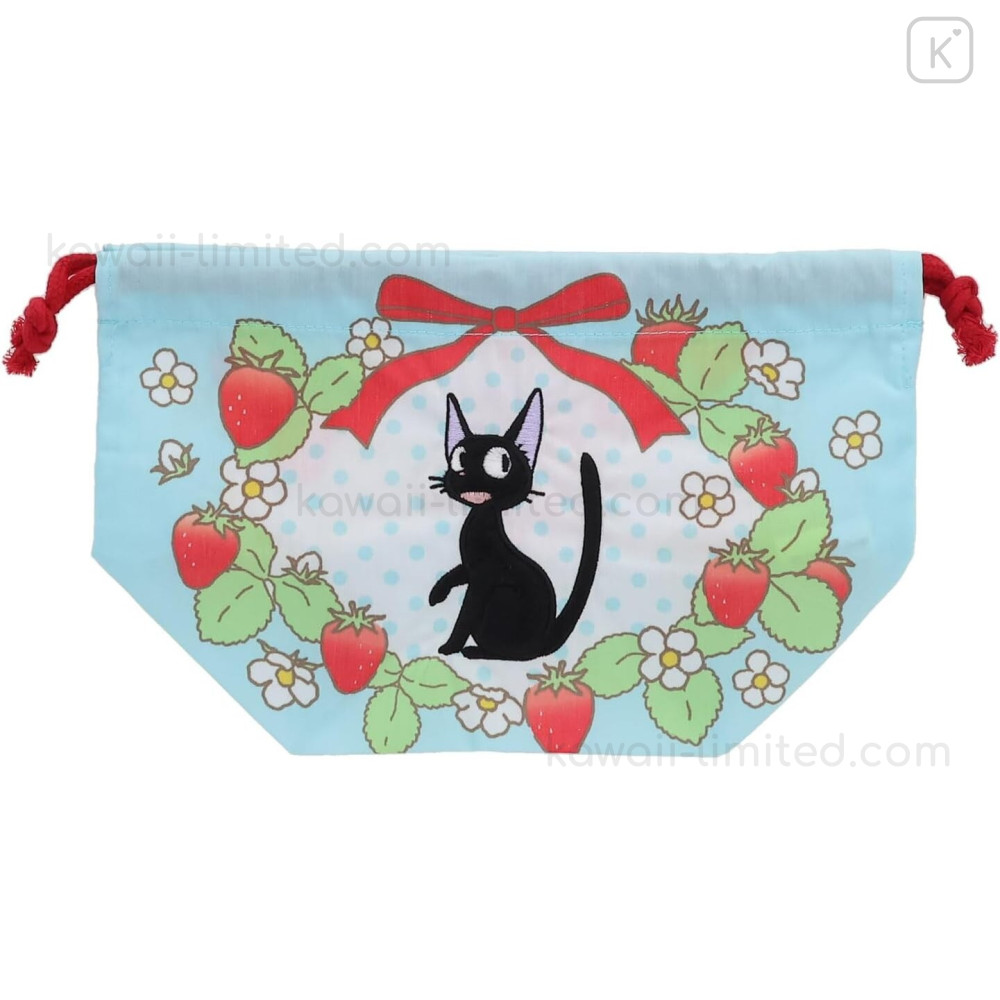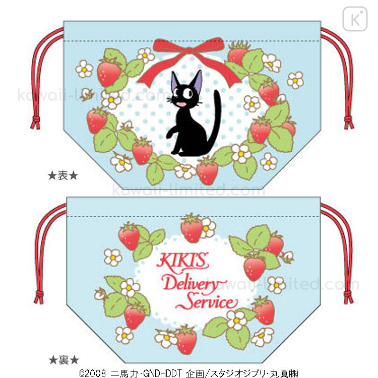 Japan Ghibli Drawstring Pouch & Lunch Bag - Kiki's Delivery Service : Jiji Strawberry Wreath Light Blue