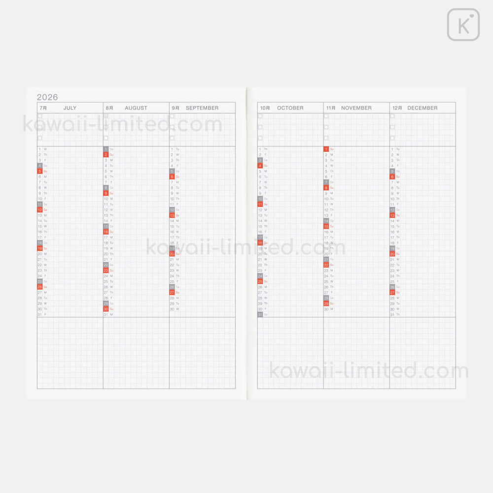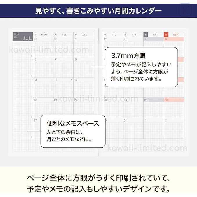 Japan Hobonichi Techo A5 Daily Cousin Book English - 2026 Jan / Mon Start
