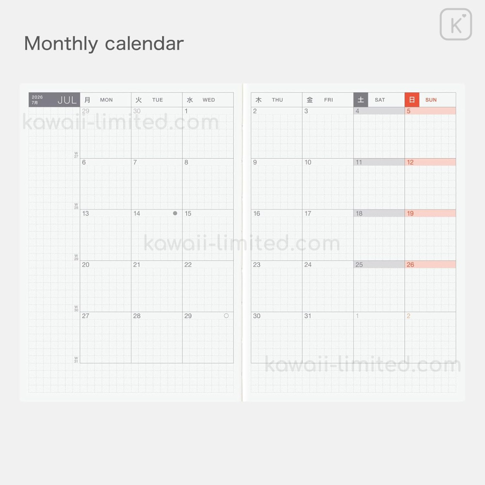Japan Hobonichi Techo A6 Daily Original Book English - 2026 Jan / Mon Start