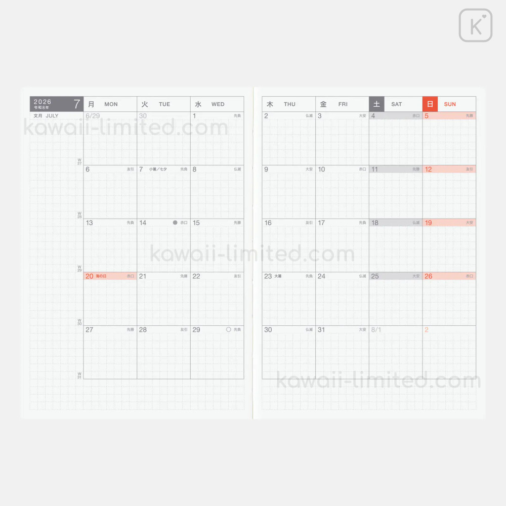 Japan Hobonichi Techo A6 Daily Original Book Japanese - 2026 Jan / Mon Start