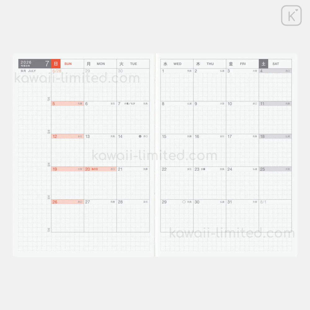 Japan Hobonichi Techo A6 Daily Original Book Japanese - 2026 Jan / Sun Start