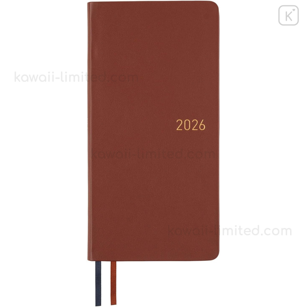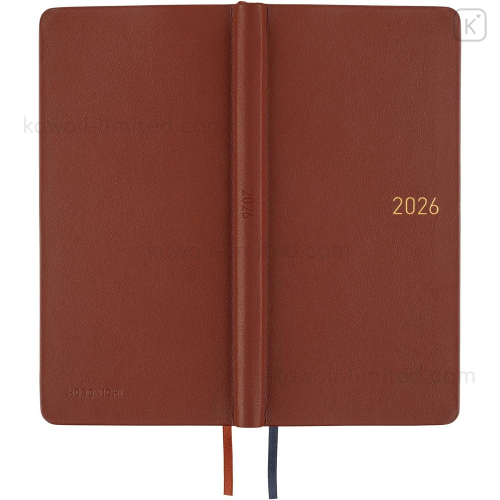 Japan Hobonichi Techo Weeks Hardcover Horizontal Japanese - Leather Wine Brown / 2026 Apr / Mon Start