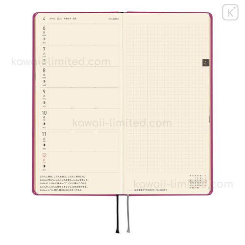 - Layout: It uses a left-hand weekly layout. The week's schedule is on the left page, and the right page is a handy grid notebook/memo space.