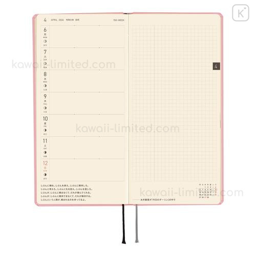 - Layout: It uses a left-hand weekly layout. The week's schedule is on the left page, and the right page is a handy grid notebook/memo space.