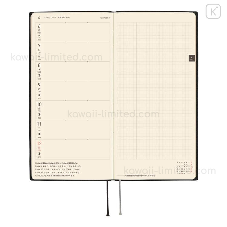 Japan Hobonichi Techo Weeks Japanese Slim Schedule Book - 2026 White Line Black