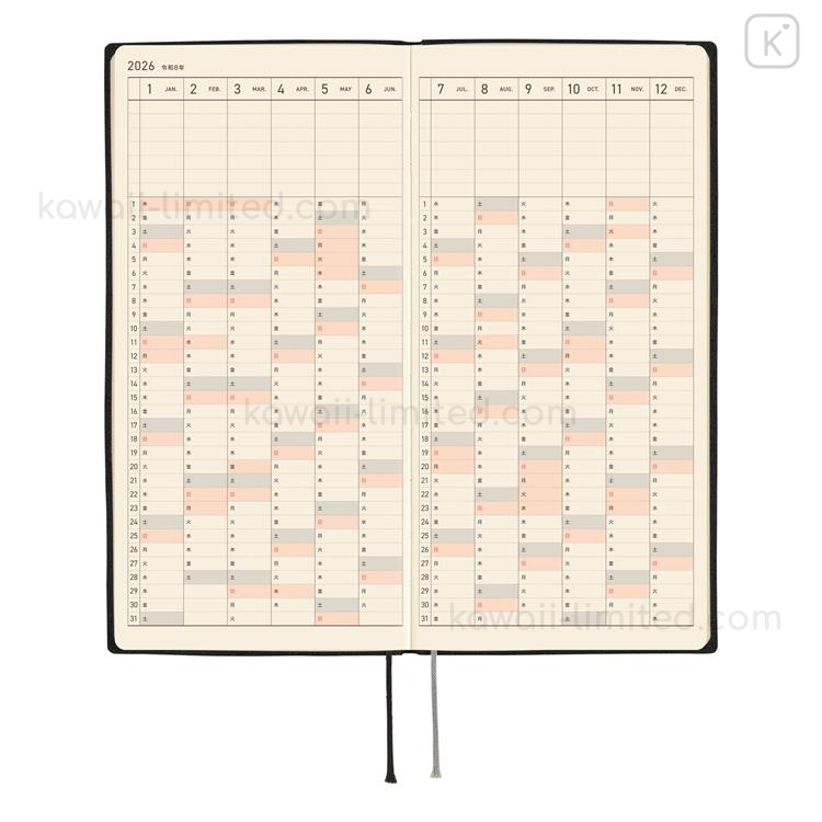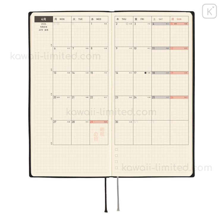 Japan Hobonichi Techo Weeks Softcover Horizontal Japanese - White Line Black / 2026 Jan / Mon Start