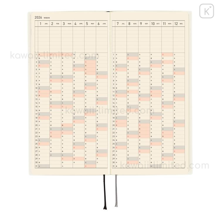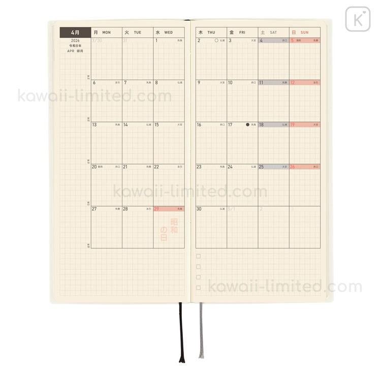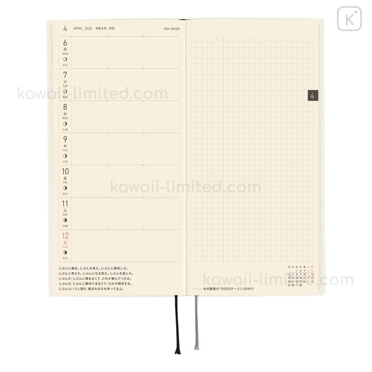 Japan Hobonichi Techo Weeks Softcover Horizontal Japanese - White Line Ivory / 2026 Jan / Mon Start