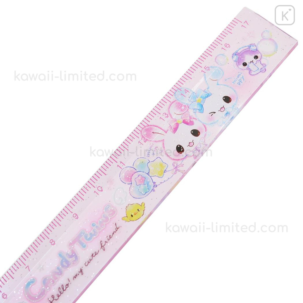 Japan Kamio 17cm Ruler - Kira Usa Twins Bubble Rabbit : Heisei Retro Y2K Pink