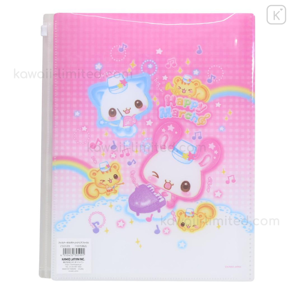 Japan Kamio 6+1 Pockets A4 Clear File Holder - Happy March Cat & Rabbit : Heisei Retro Pink